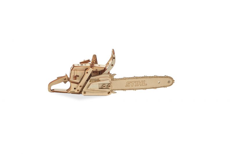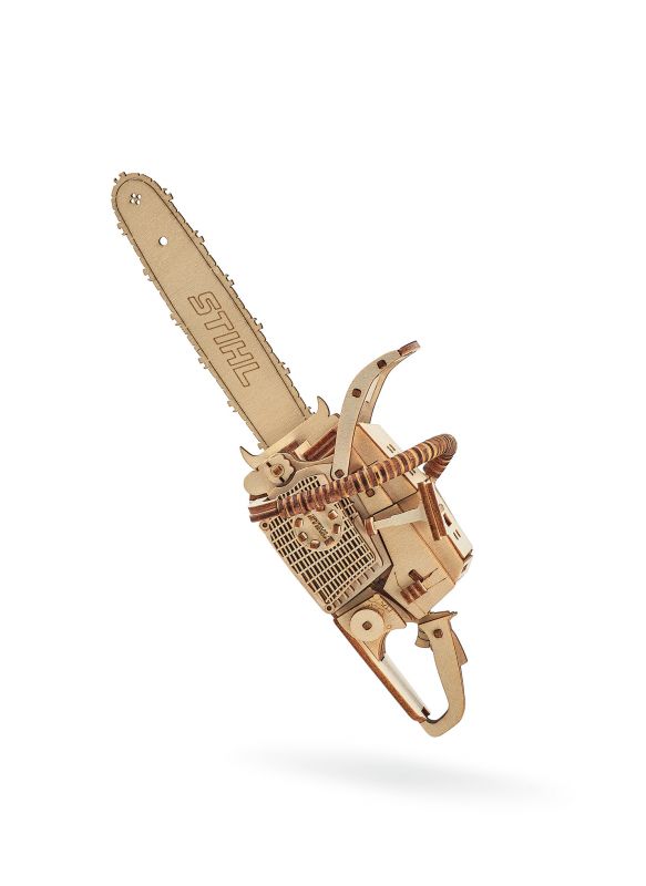 Vyrobte si vlastní motorovou pilu! Naše dřevěné 3D puzzle s motorovou pilou se skládá ze 136 dílků, má celkovou velikost přibližně 25 x 7 x 9 cm a je vyrobeno ze dřeva s certifikátem FSC.