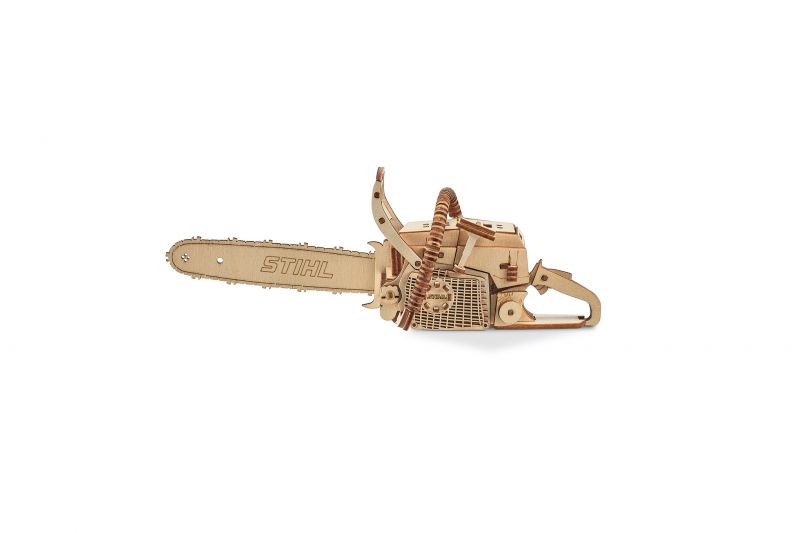 Vyrobte si vlastní motorovou pilu! Naše dřevěné 3D puzzle s motorovou pilou se skládá ze 136 dílků, má celkovou velikost přibližně 25 x 7 x 9 cm a je vyrobeno ze dřeva s certifikátem FSC.