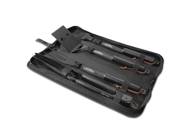 Ideální grilovací sada pro všechny fanoušky série TIMBERSPORTS® a pro milovníky grilování – navržena v Německu. Sada obsahuje grilovací kleště, kartáč, grilovací obracečku s funkcí otvíráku na lahve a grilovací špíz. Všechno náčiní je samozřejmě patřičně označeno – na každém předmětu je laserem vyražen nápis STIHL TIMBERSPORTS® a na obracečce je dokonce vyražen reliéf. Grilovací sada se dodává v kvalitním pouzdře ze syntetické kůže pro optimální skladování náčiní. Délka: 450–480 mm, lze mýt v myčce nádobí (před mytím odstraňte závěsná poutka).