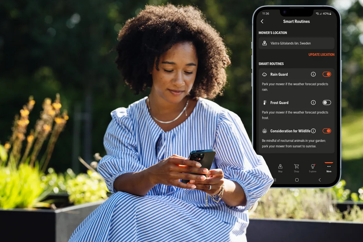 Vše začíná v aplikaci Automower® Connect, kde si můžete vytvořit individuální a přizpůsobitelné pracovní oblasti spolu s dočasnými zakázanými zónami. Tyto zóny lze později snadno přizpůsobit zahradním projektům nebo změnám rozložení trávníku během sezóny.