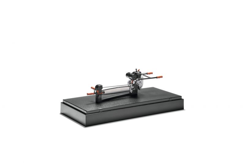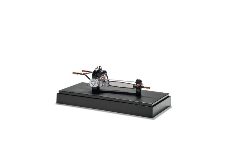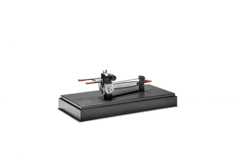 Sběratelský model historické pily Typ A. Materiál: odlitek těžkého zinku, nabarveno do dobových barev. Umístěno na plastovém podstavci a zakryto plastovým sklem od firmy Schuco. Měřítko 1:12.