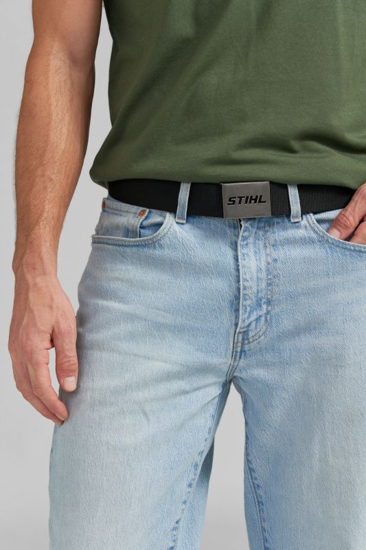 Tento unisex opasek v černé barvě je klasický, jednoduchý a nadčasový. Pevný tkaný materiál je pružný a na kovové sponě je logo STIHL. Délku lze nastavit pomocí upínacího mechanismu. Délka je 120 cm a lze ji podle potřeby zkrátit.