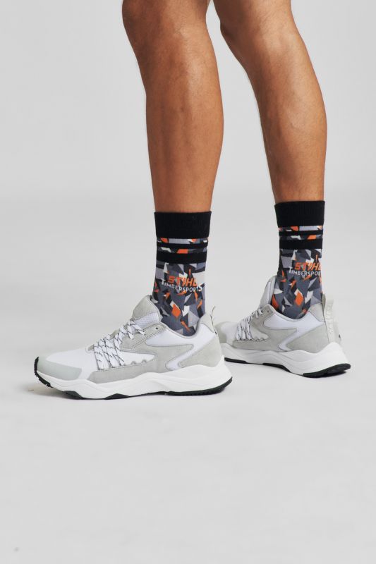 Kvalitní ponožky s tradičním potiskem TIMBERSPORTS® v černé, oranžové a bílé barvě. Pro každého fanouška!