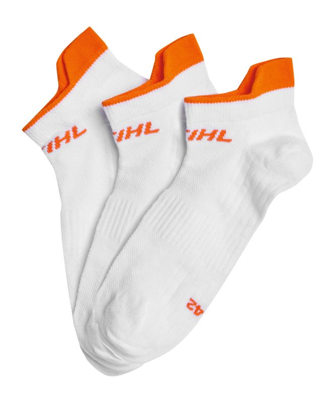 Léto může přijít. S těmito unisex ponožkami do tenisek z lehké směsi materiálů bude klima v botách stále příjemné. Na přední straně je pletené logo STIHL, ponožky jsou označeny jako " pravá" a "levá" a velikost je uvedena na chodidle.