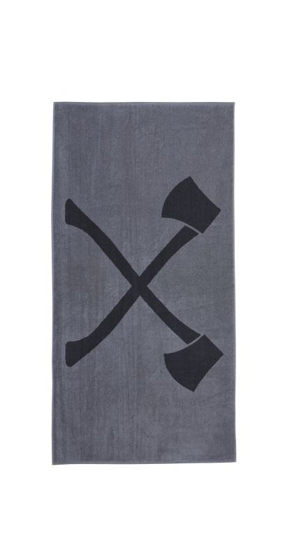Stylový šedý ručník s výraznými zkříženými sekyrami dokonale doplňuje osušku ve stejně velkorysém designu. Ať už doma nebo v bazénu: příjemně měkký ručník obzvlášť dobře absorbuje vlhkost. Rozměr: 50x70 cm, 100% bavlna