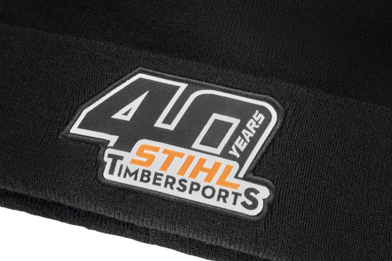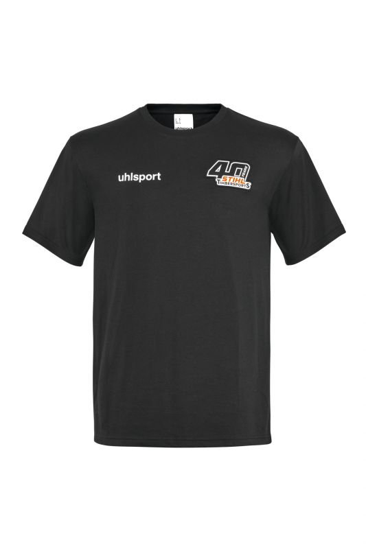 Černé tričko vyrobené z organické bavlny u příležitosti 40. výročí série STIHL TIMBERSPORTS®. Na přední straně hrudníku se nachází odznak s logem výročí a nápis sponzora Uhlsport. Zadní stranu zdobí bílý potisk s typickými zkříženými sekerami TIMBERSPORTS®.