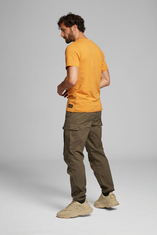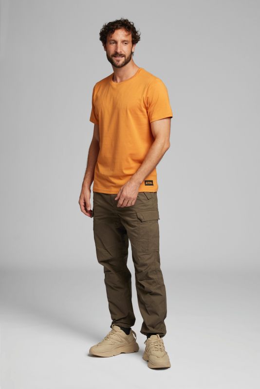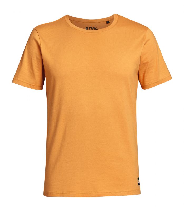 Pánské tričko z organické bavlny. Toto tričko s kulatým výstřihem zaujme svou jednoduchostí. Logo STIHL na pozadí je vytištěno jako výřez na levé přední straně. "Vystřižené" logo STIHL se objevuje v barvě a materiálu trička. Barvení a potisk jsou provedeny ekologickými barvami.